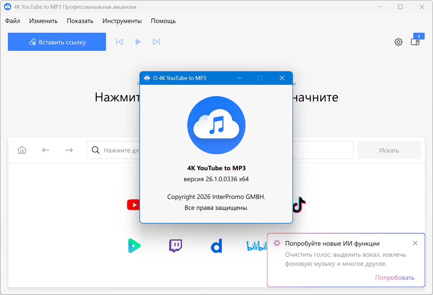 4K YouTube to MP3 26.1.0.0336 + Portable [Multi/Ru]