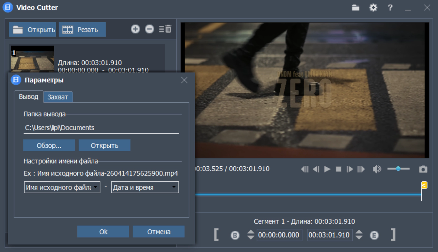 - Обрезка без потерь с тем же качеством, что и исходное видео.