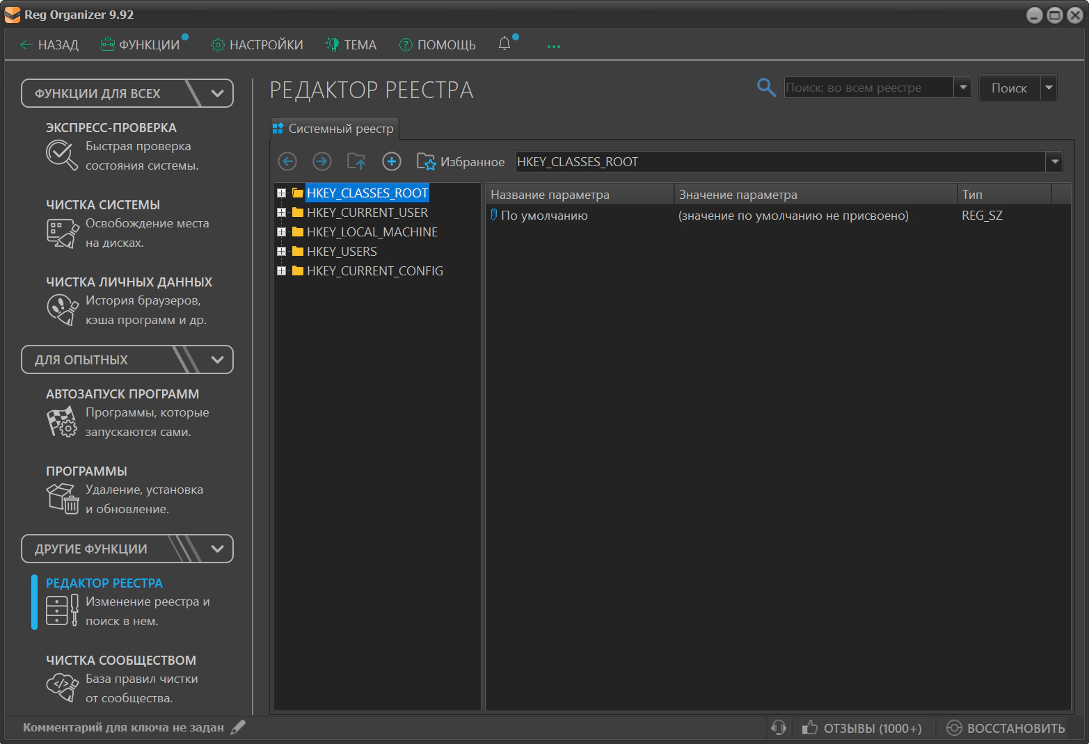 - Продвинутый редактор реестра Reg Organizer позволяет производить различные операции с системным реестром, в том числе экспортировать, импортировать, копировать значения ключей и многое другое. В отличие от встроенного в Windows, редактор реестра в Reg Organizer более функционален.