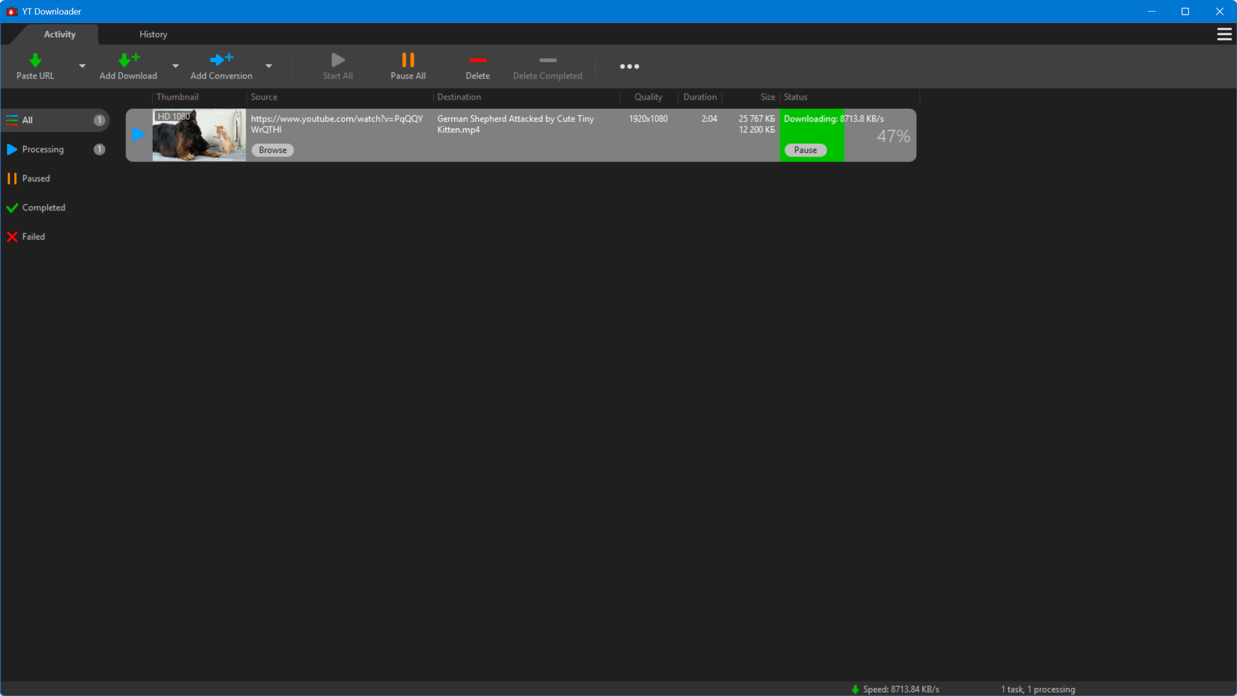 Ускорьте загрузку файлов YT Downloader имеет продвинутый механизм ускорения загрузки, который позволяет загружать видео на 500% быстрее, чем обычная скорость.