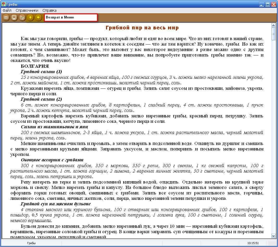 Советы, как правильно заготовить грибы впрок, рецепты приготовления грибных блюд со всего земного шара - все это также есть на предлагаемом диске.