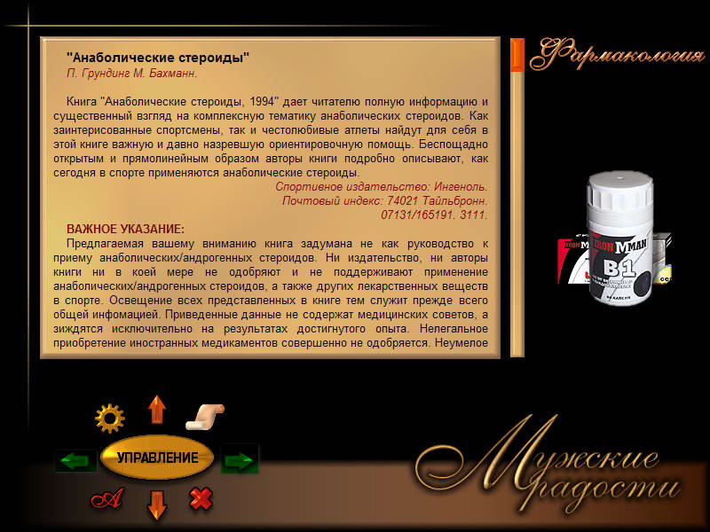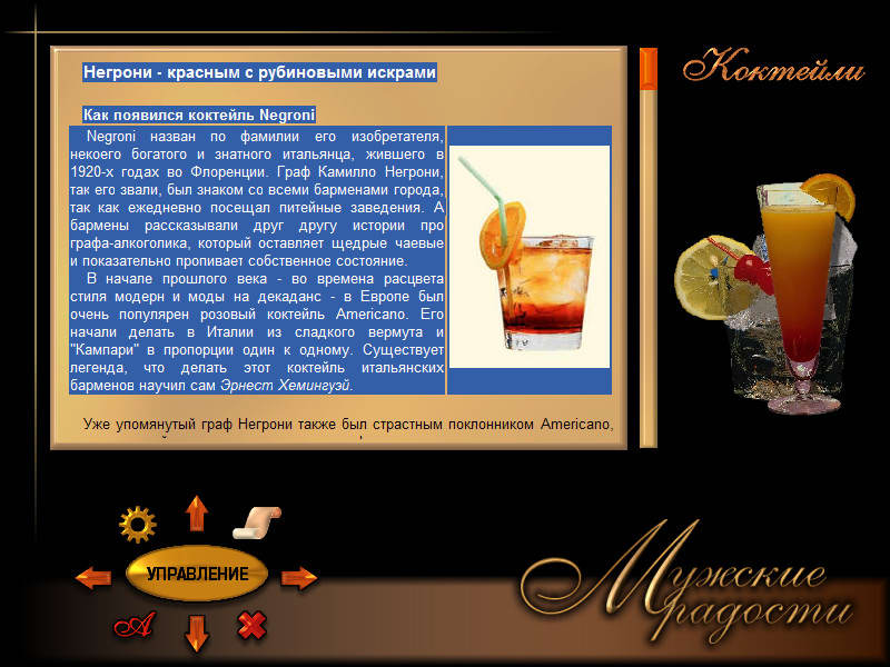 Описание: Эта интерактивная энциклопедия рассказывает о тех вещах, какие делают жизнь мужчин разнообразной и интересной, доставляя им небольшие (а, может быть, и большие) радости. Шесть основных разделов - о напитках, табаке, рыбалке, охоте, бодибилдинге и бане. Огромное кол-во интереснейшей информации.