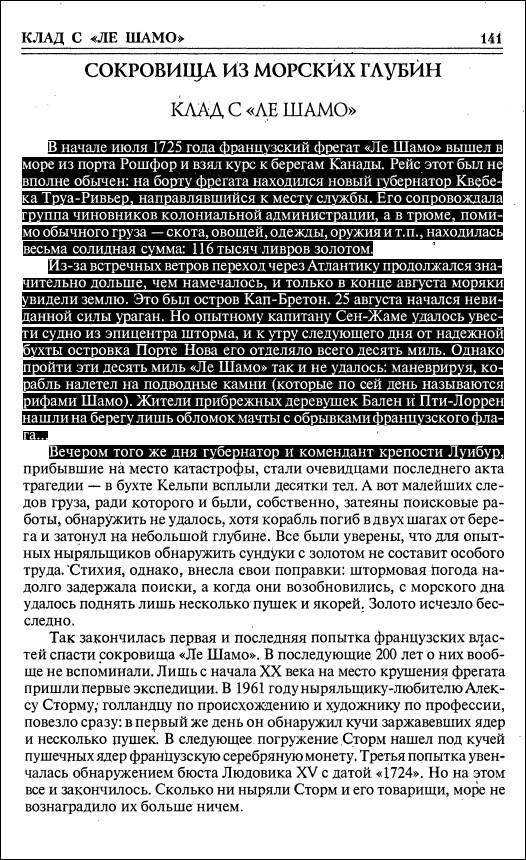 с OCRОписание: Эта книга рассказывает о ста великих кладах всех времён и народов - реальных, легендарных и фантастических - от сокровищ Ура и Трои, золота скифов и индейцев майя до призрачных богатств Эльдорадо, ордена тамплиеров, и пиратов Карибского моря.