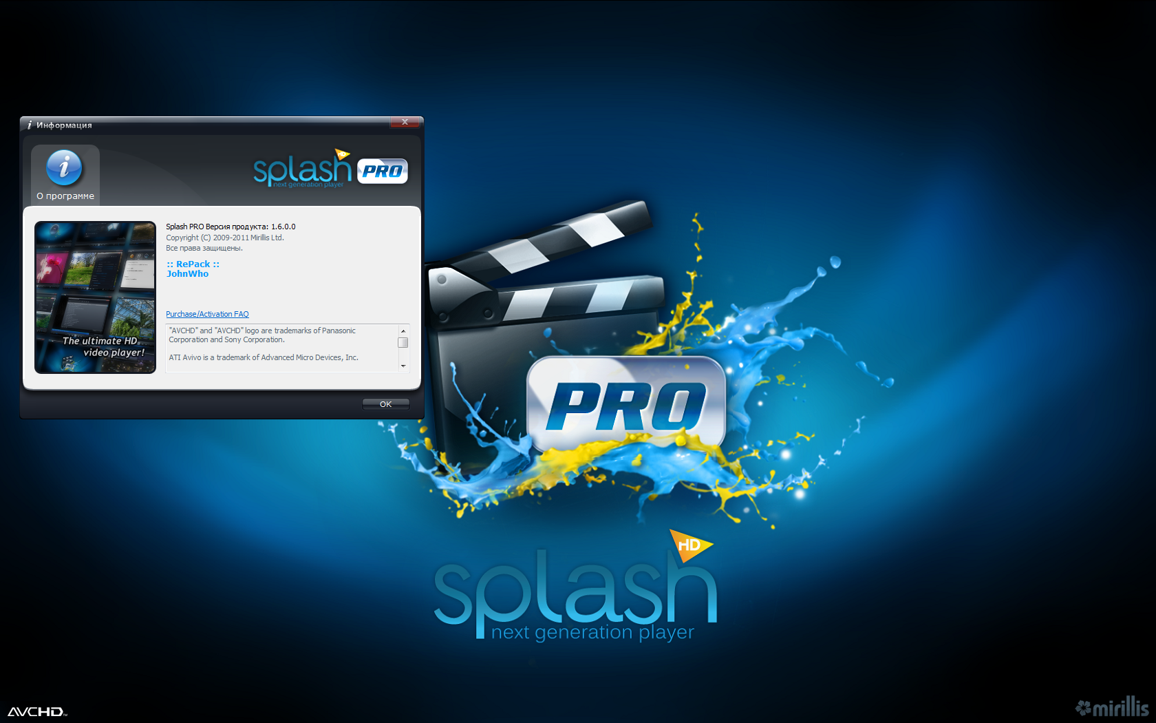 Название Программы: Splash PRO HD Player Версия программы: 1.6.0.0 RePack by 7sh3 (JohnWho) Последняя Версия программы: 1.6.0.0 Адрес официального сайта: mirillis Язык интерфейса: Multi/Rus