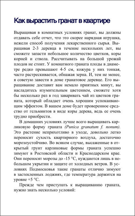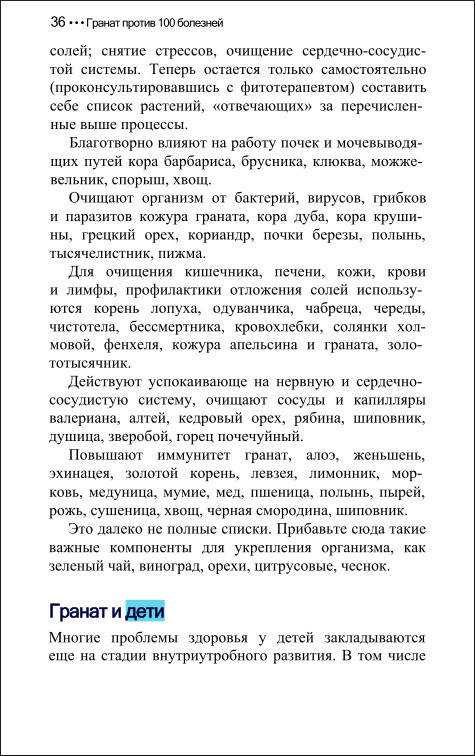 Автор: Н.Стогова Название: Гранат против 100 болезней Год: 2006 Издательство: «Питер» ISBN: 5-94807-044-1 Жанр: Народная медицина, фитотерапия Формат: Pdf Серия: «Против 100 болезней» Качество: e-book, интерменю, закладкиОписание: Арабы называют гранат райским деревом. Они пьют его сок для укрепления сердечных мышц и стенок желудка, очищения крови, избавления от камней в почках и облегчения ревматических болей. Кожура плода граната также нашла применение в народной медицине Востока — она рекомендуется для лечения кожных заболеваний, ее отвар помогает очищать кишечник от паразитов. Лекарственными свойствами обладают не только плоды, но и корни и даже кора, а из листьев граната заваривают вкусный тонизирующий чай. Из новой книги известной целительницы Надежды Стоговой вы узнаете, как самостоятельно приготовить противовоспалительные, болеутоляющие, кровоостанавливающие, жаропонижающие и другие препараты из граната. * Родственные релизы: книги - Женьшень - корень жизни; «Лечение медом и другими продуктами пчеловодства»; «Чайный Гриб: Чудо-Целитель в трехлитровой банке»; Лечение хреном; Лечение чесноком; Лечение молочным грибом; Алоэ - природный целитель; «Золотой ус, лук, лимон, чеснок»; «Золотой ус против ста болезней»; «Чистотел и алоэ. Чудо-целители семьи»; Чай - великий целитель; «Яблочный уксус — ваш домашний доктор»Скриншоты: