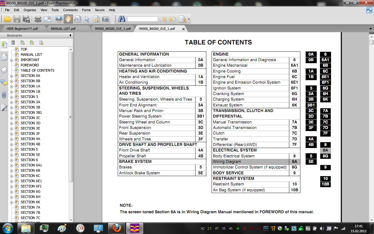 Присутствуют электросхемы,данные по диагностике,снятие и ремонт агрегатов.кузовные размеры и т.д...