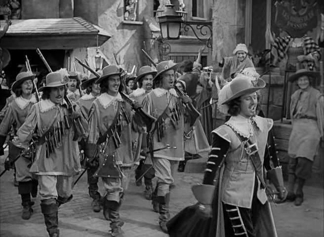 На моей памяти это единственный фильм о мушкетёрах, где мушкетёры показаны марширующими с мушкетами. По всему остальному синематографу решительно непонятно, отчего же эти четверо называются мушкетёрами.