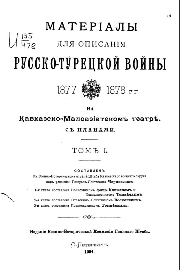 Оригинальное название: Матерiалы для описанiя русско-турецкой войны 1877-1878 гг. на Кавказско-Малоазiатскомъ театрѣ сѣ планами