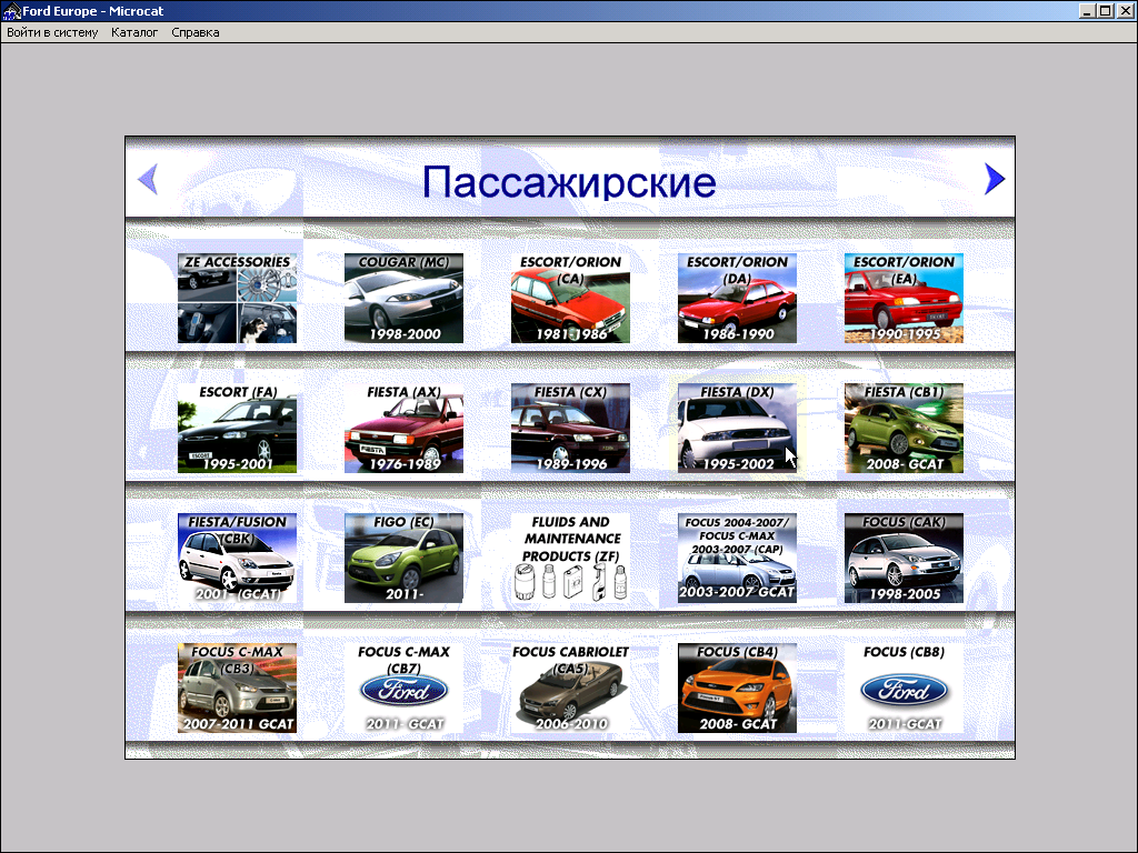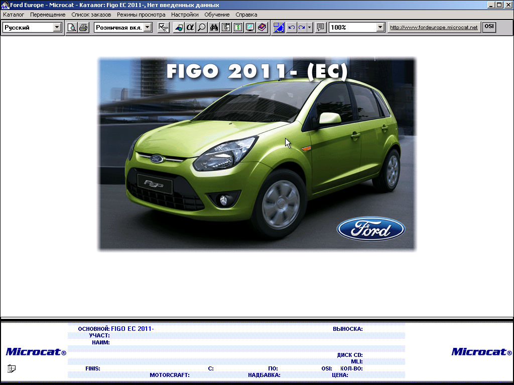 Год/Дата Выпуска: 12/2011 Версия: 2.2.3.4 Разработчик: Infomedia Сайт разработчика: http://www.infomedia.com.auНазвание а/м: Ford Europe Года выпуска: Все модели до 2012 Тип раздаваемого: Электронный каталог запчастей. Системные требования: Win2000, Win98, WinNT, WinXP, Win7 (кроме х64). Язык интерфейса: Многоязычный (русский присутствует). Таблэтка: Не требуеться. Формат: Unpacked Описание:Каталог запчастей Ford (Форд) содержит каталог деталей для всех моделей марки Форд выпущенных для европейского рынка. В каталоге Ford имеется поиск по Vin, по оригинальному номеру, названию, также имеется поиск применяемости деталей. Каталог аксессуаров содержит оригинальные номера аксессуаров Ford, и их фотографии. Рекомендую в виртуальную машину: 1.При полной установке (программа + данные) занимает около 5,5 Гб. 2.Откат даты не требуется (работает без отката до мая 2013 года). 3. Полностью переделанный дистрибутив, просто запустите setup.exe и укажите путь установки. 4. Если раньше стояли предыдущие версии MICROCAT Ford, не забудьте их удалить перед установкой, иначе возможны проблемы с определением актуального каталога с базой данных (программа при запуске перебирает все логические диски (кроме Z  и ищет папку FEU_DATA, а также файл mc1234 нулевой длины в корне диска).. 5.При возникновении проблем с запуском для их устранения внимательно прочтите !readme.txt или !readme_eng.txt 6.Запустите программу, создайте пользователя через меню Administrator. Скриншоты: