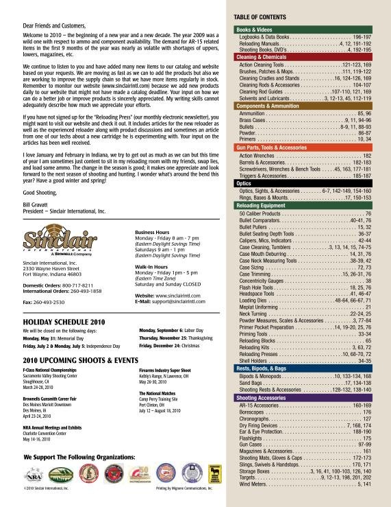 Вот уже более тридцати лет, как Fred Sinclair основал дело по производству огнестрельного оружия и инструментария для охотников. В 2007 году Sinclair International были объединены с Brownells Company и считаются на международном уровне крупнейшими постащиками оружейных принадлежностей и инструментов. Представлен каталог Sinclair 2010, где представлена также продукция от самых уважаемых изготовителей, таких как Redding, Sierra, Berger, RCBS и другие.Скриншоты: