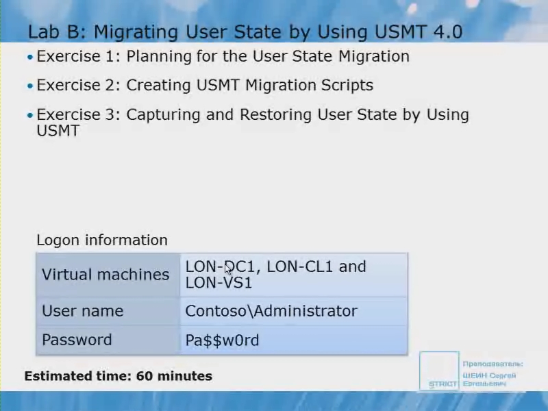 Модуль 9. Перенос пользовательских настроек с помощью WET и USMT 4.0 В этом модуле описываются средства переноса пользовательских настроек, такие как Windows Easy Transfer и User State Migration Tool (USMT) в различных сценариях миграции.