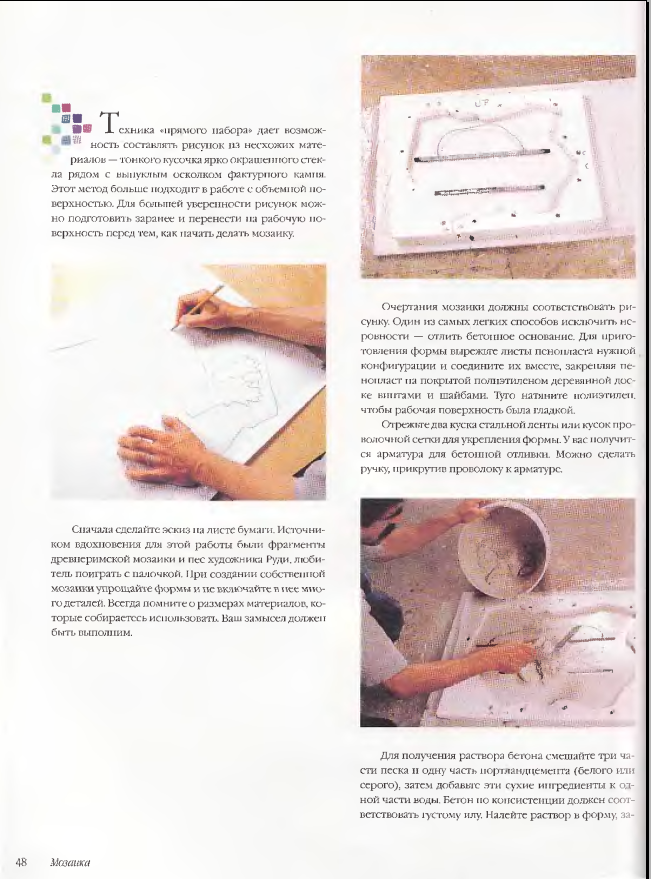 Описание: В книге описано, как кубик за кубиком, шаг за шагом создаются разноцветные, светящиеся мозаики, а также какими материалами и инструментами следует пользоваться. Немного внимания, терпения и фантазии - и совсем скоро стильные мозаичные рисунки украсят каждый уголок вашей квартиры и садового участка. Искусство мозаики известно уже несколько тысячелетий. Лучшие работы мастеров мозаики по силе восприятия могут сравниться с шедеврами живописи, скульптуры, архитектуры, а зачастую и превосходят их. При взгляде на законченную мозаику кажется, что техника ееизготовления невероятно сложна и требует недюжинного мастерства. На самом деле овладеть этим замечательным искусством не так уж и трудно, а набор инструментов для него совсем небольшой. В качестве исходного сырья можно использовать камешки, осколки стекла, черепки пoсуды. Сочетание этих простейших материалов позволяет добиваться потрясающих результатов - от элементарных геометрических фигур до самых замысловатых узоров в ультрасовременном стиле. Безгранична и цветовая палитра - от вызывающе яркой до строгой и монохромной.Скриншоты: