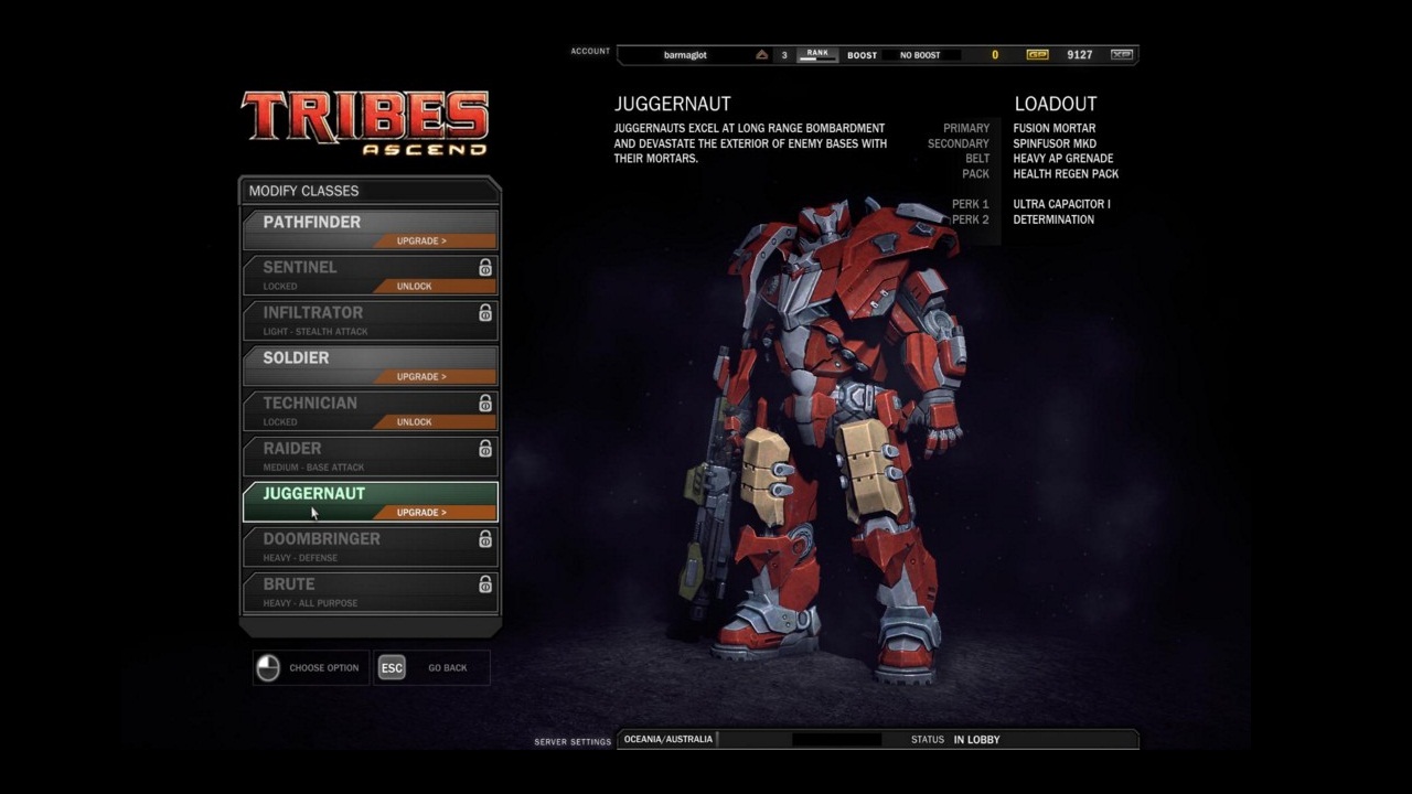 Tribes: Ascend это ремейк оригинальной Starsiege: Tribes. На данный момент в игре представлено 9 классов, по 3 на каждый тип брони из оригинальной игры, где игроки различались лишь типом носимого доспеха (Light/Medium/Heavy). Тип доспеха определяет скоростные показатели, количество здоровья и степень поглощения урона. Также, более тяжело бронированные классы имеют и более убойное вооружение. С другой стороны, лёгкий доспех позволяет проще маневрировать во время движения и повышает скрытность.