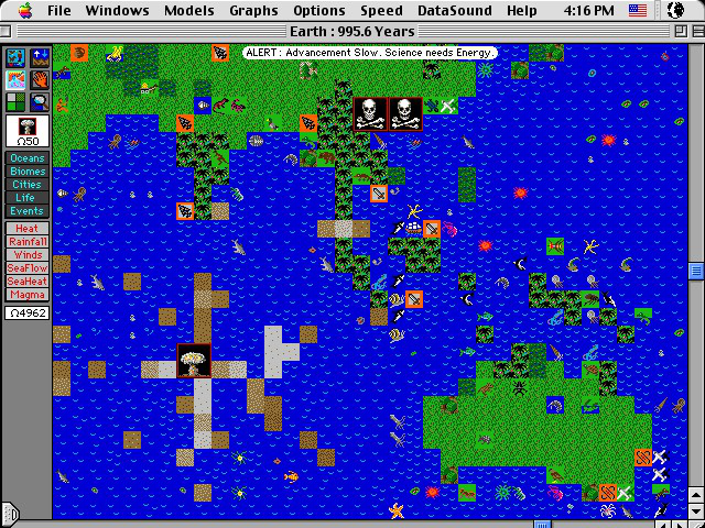 Дата выхода игры: 1992 Дата выхода игры в России: n/a Жанр: Стратегия Разработчик: Maxis Издатель: Maxis Издатель в России: n/a Язык интерфейса: Английский Язык озвучки: Английский Тип издания: RePack Системные требования: Процессор: i286 Память: 8Mb Видеокарта: 2Mb VGAТаблетка: Не требуетсяОписание: Интересная «биологическая» стратегия с удивительной свободой выбора и – да простят меня её авторы – с некоторой ориентацией на любителей всевозможных извращений. В Simlife вы можете создать свой мир – именно мир в полном смысле этого слова: свою планету со своей экосистемой (но её надо будет продумать!), своими растениями и животными, причём при создании их вы ограничены только собственной фантазией. Ну, ещё, конечно, набором некоторых базовых «заготовок», однако же комбинировать их можно как угодно.