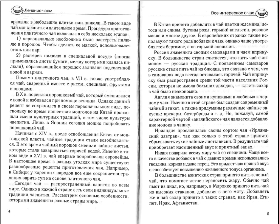 Описание: Россия традиционно считается чайной страной. Поэтому нашему читателю будет интересно узнать, какими полезными свойствами обладает чай, как его готовят в разных странах, какие рецепты позволяют побаловать самый взыскательный вкус и, наконец, как с помощью чая, а также смеси других лекарственных трав можно лечить те или иные заболевания.