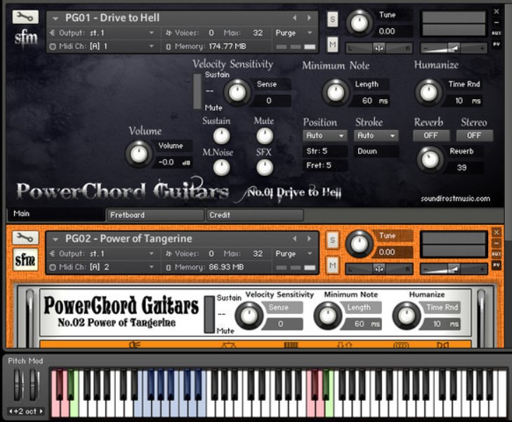 SoundfrostMusic - Power Chord Guitars - No.01 Drive to Hell & No.02 Power of Tangerine (Kontakt)[NKI][английский]
