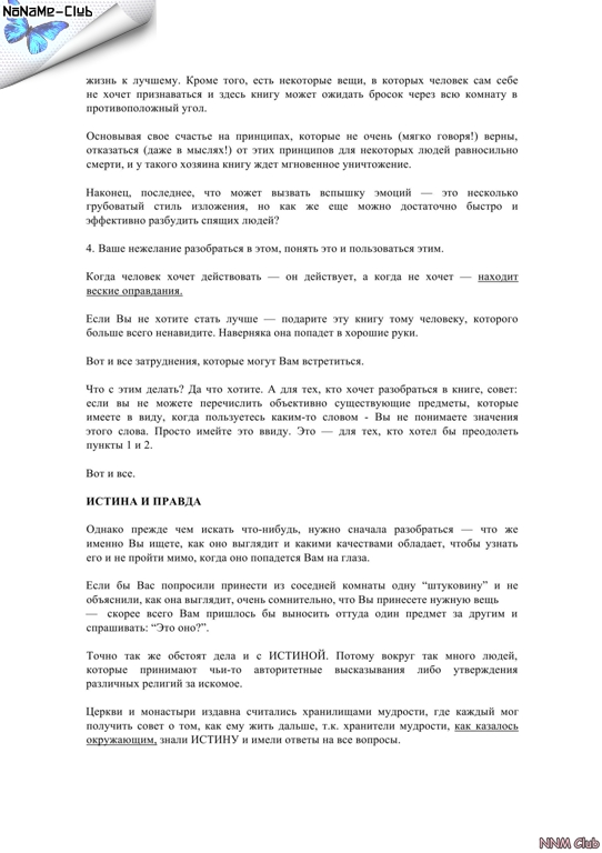 И для того, чтобы хотя бы восстановить в себе прежний уровень уверенности, вам придется либо полностью принять существующее мировоззрение и сделать его своим, либо разработать свою систему взглядов, которая превосходит по правильности эту. В противном случае ваше душевное равновесие не будет восстановлено. Такое случается при контакте с любой системой взглядов, философией, мировоззрением. Восстановить вашу убежденность не сможет никто, кроме Вас. Поэтому прежде чем начать читать – взвесьте все “за” и “против”. Вам решать. Обычно, когда люди начинают сталкиваться с чем-либо подобным, их никто не предупреждает о последствиях такого ознакомления. Вы предупреждены.