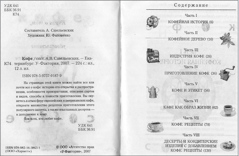 Автор: А.В. Савельевских (сост.) Название: Кофе Год: 2007 Издательство: У-Фактория Отрасль (жанр): Кулинария Формат: JPEG Качество: Хороший скан Количество страниц: 224