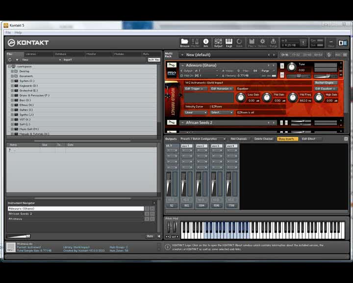 Описание:Kontakt - стандарт в мире семплеров. Большинство пользователей не используют и десятой доли тех возможностей, которые в него заложены. Пятая версия несёт в себе огромное количество улучшений и исправлений. Как то - новые профессиональные эффекты: SOLID G-EQ, SOLID BUS COMP, TRANSIENT MASTER, TAPE SATURATOR. Целых 37 новых фильтров и другое. Видеоуроки по навыкам владения популярной программы создания музыки.