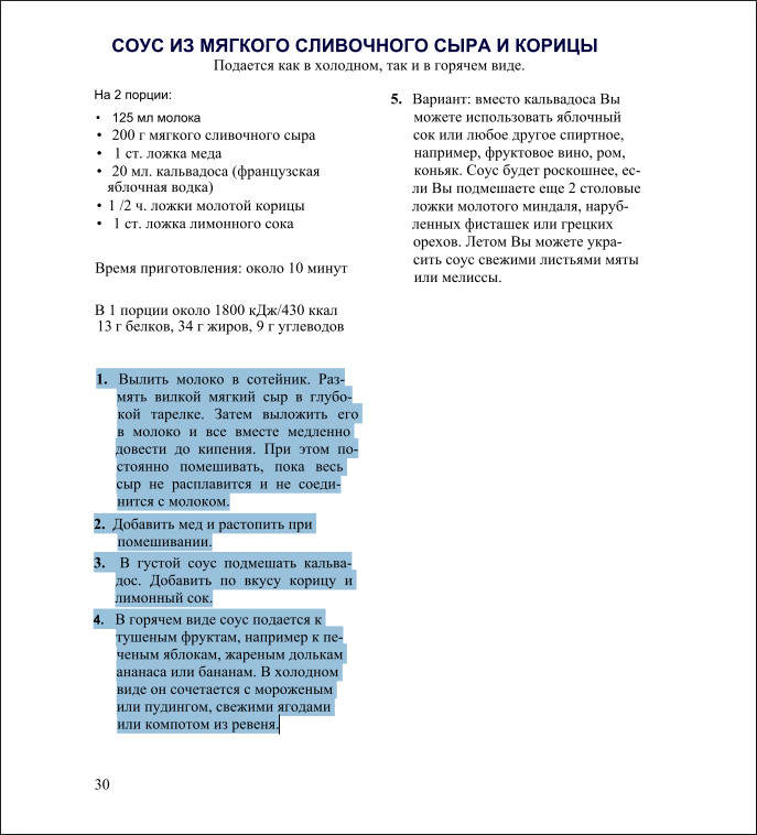 Автор: Корнелия Адам Название: Соусы Издательство: «Оникс» Год: 1997 Жанр: Кулинария Серия: «Несложно и вкусно» Формат: Pdf Страниц: 36 с илл. Качество: e-book, закладкиISBN: 5-89270-085-2 Описание: Соус может быть не только мясным или, скажем, белым. Немного фантазии позволит приготовить соус к каждому блюду. Горячий или холодный, острый или сладкий, он может превратить любую трапезу в изысканный кулинарный праздник. Вкуснейшие соусы на все случаи. С помощью несложных рецептов шаг за шагом все они получаются совсем просто: холодный соус из базилика и миндаля, соус из горгонзолы и петрушки. Все рецепты снабжены цветными иллюстрациями!Скриншоты: