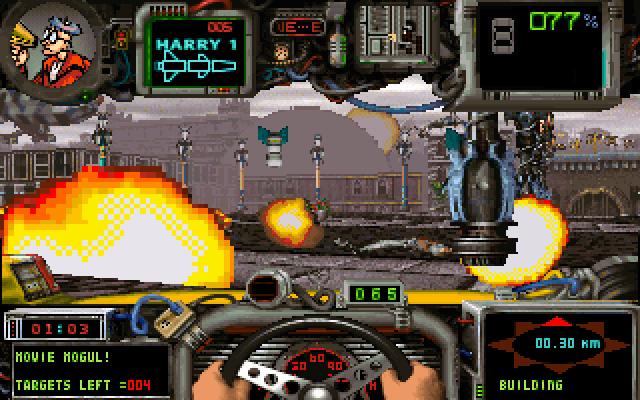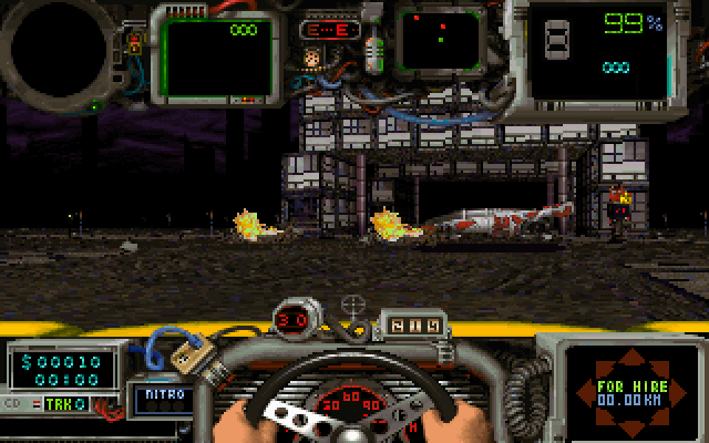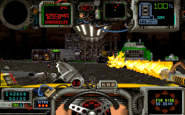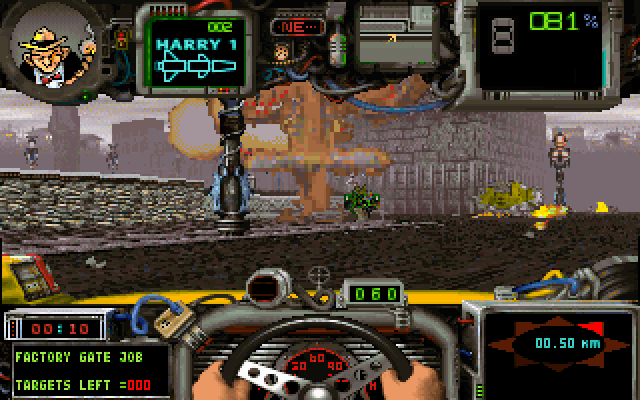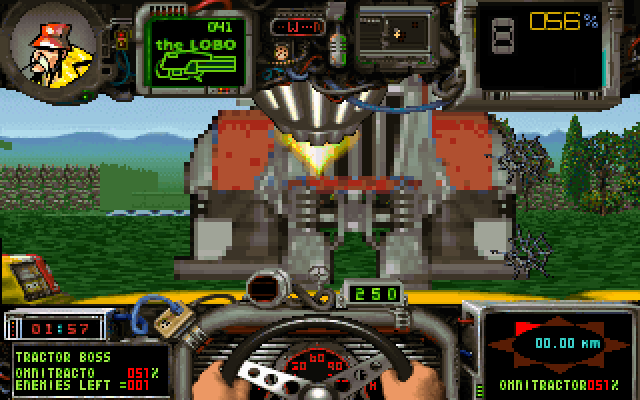 Картинка на экране, на мой взгляд, даже немного послабее Doom’а (хотя автомобили, кстати, трёхмерные), однако всё необходимое видно, а больше ничего, собственно, и не требуется. Главными остаются динамика и необходимость следить за состоянием техники: не забывайте, сломанная машина – верная гибель для главного героя.