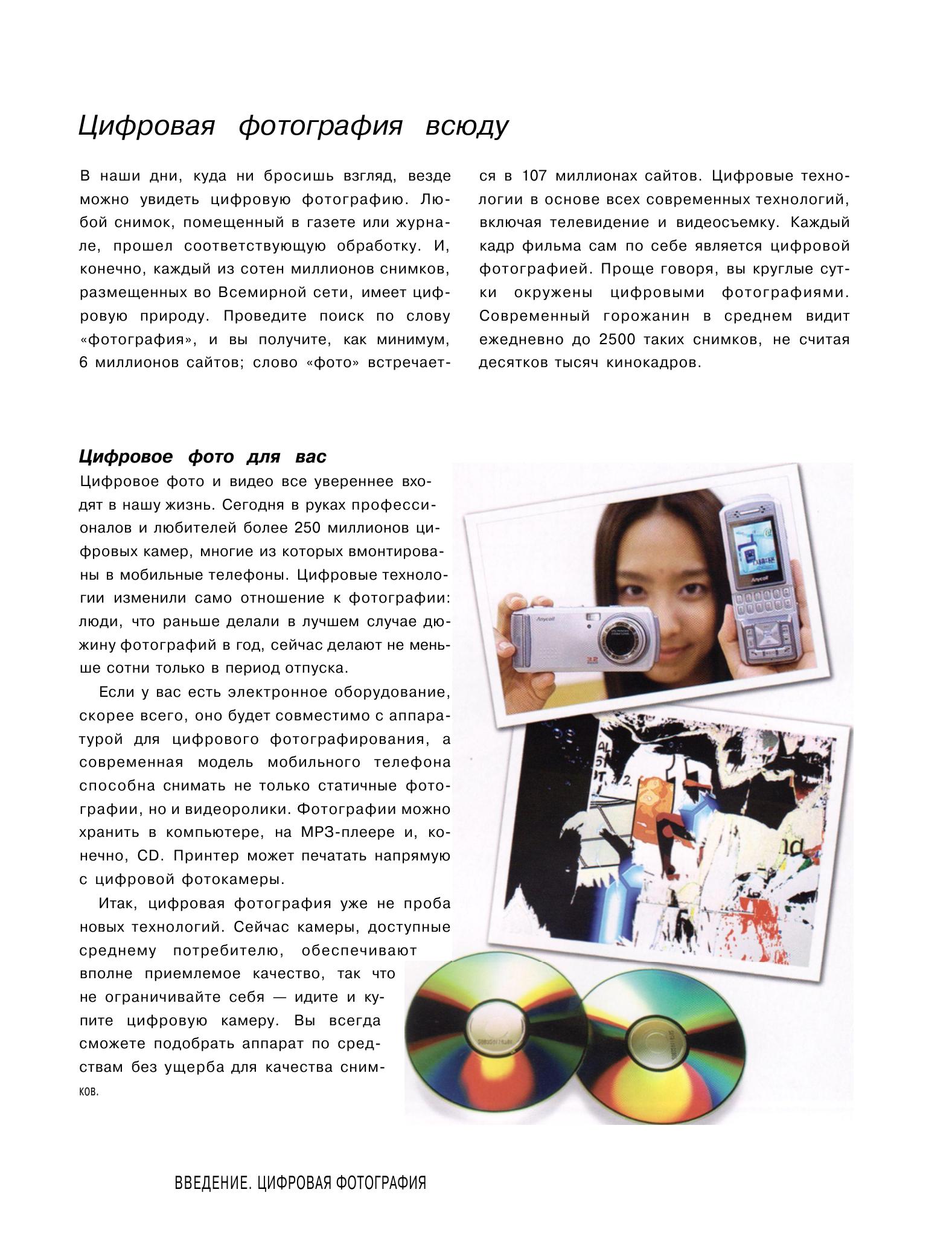 Описание:Добро пожаловать в волшебный мир цифровой фотографии — мир неограниченных возможностей! Один из ведущих специалистов Том Энг открывает мастер-класс для всех желающих. Каждый, независимо от того, новичок он или мастер, найдет для себя немало интересного на страницах этой книги: обзор современных цифровых фотокамер, программного обеспечении и периферии, подробное руководство по обработке и преобразованию снимков в Photoshop, практические советы по выполнению съемки, печати, презентации снимков и многое другое.