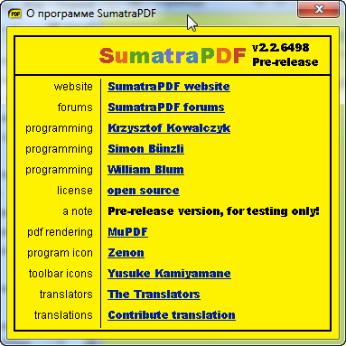 История SumatraPDF (Pre-release):