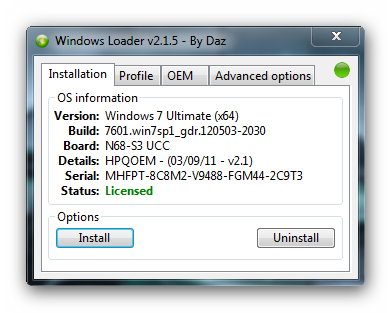 Название программы: Windows Loader by Daz Версия программы: v2.1.5 Адрес официального сайта: Windows LoaderЯзык интерфейса: Английский Системные требования:Windows 7 Windows Vista Windows Server 2008 Описание:Это загрузочное приложение, используемое миллионами людьми по всему миру, хорошо известное тем, что обходит Microsoft's WAT (Windows Activation Technologies) и, вероятно, является самым безопасным из всех подобных. Приложение внедряет SLIC (System Licensed Internal Code) в вашу систему до начала загрузки Windows, да так, что "недалёкая Windows" начинает считать себя активированной. Запускать от имени Администратора (желательно из проводника Windows, а не из другого файлового менеджера) Supported operating systems