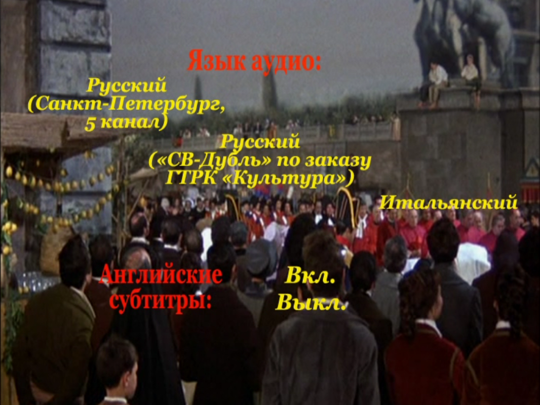 Аудио: (Dolby AC3, 1 ch) ~128 kb/s |Русский, многоголосый закадровый ("СВ-Дубль" по заказу ГТРК "Культура")|