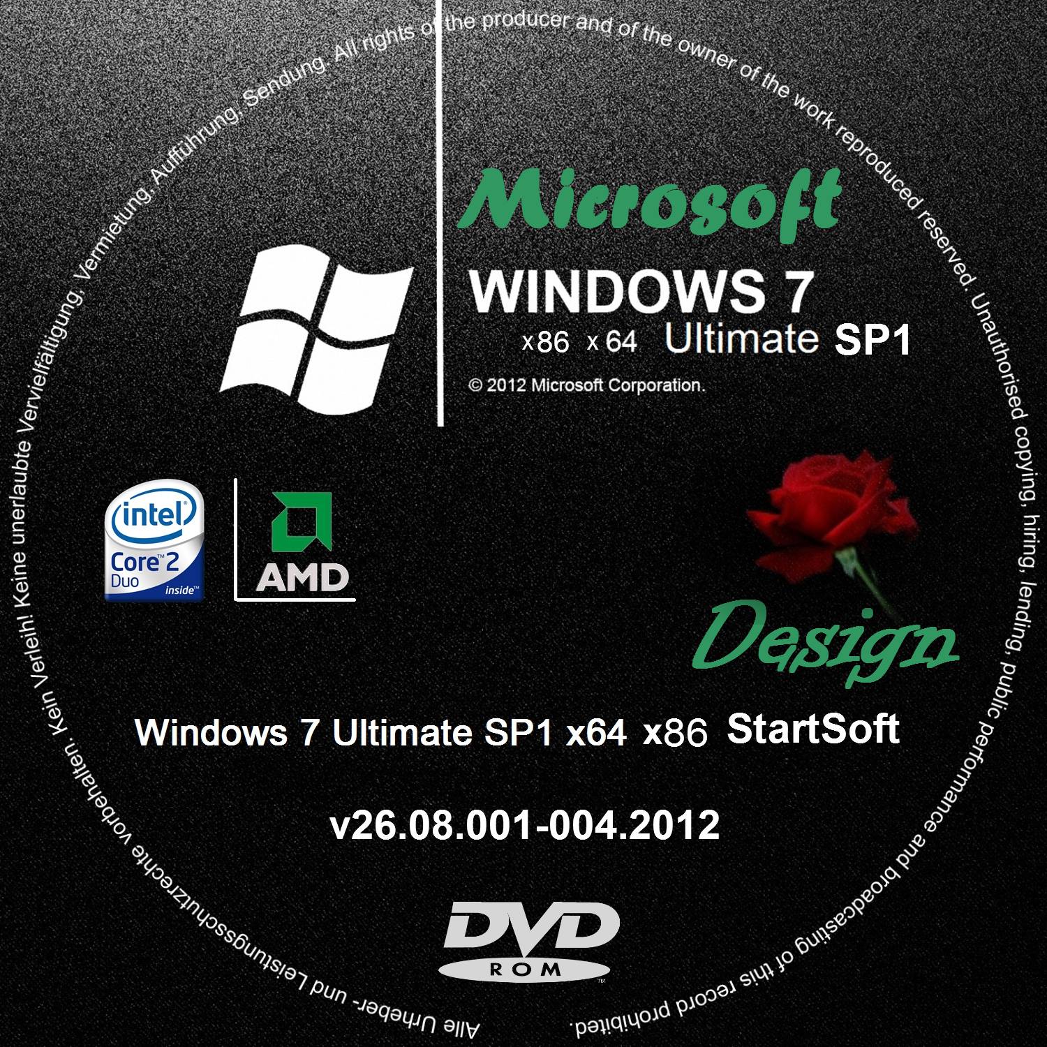 Название программы: Windows 7 Ultimate SP1 x86 x64 By StartSoft v26.08.03-04.12 Версия программы: v26.08.03-04.12 Последняя Версия программы: v26.08.03-04.12 Адрес официального сайта: MicrosoftАвтор сборки StartSoftЯзык интерфейса: Русский Лечение: не требуется Тип лекарства: не требуется Системные требования:*32-разрядный (x86) или 64-разрядный (x64) процессор с тактовой частотой 1,8 гигагерц (ГГц) или выше; *1 гигабайт и более (ГБ) (для 32-разрядной системы) или 3 ГБ и более (для 64-разрядной системы) оперативной памяти (ОЗУ); *19 гигабайт (ГБ) (для 32-разрядной системы) или 21 ГБ (для 64-разрядной системы) пространства на жестком диске; *графическое устройство DirectX 9 с драйвером WDDM версии 1.0 или выше. Описание: Сборка создана, на базе оригинальных образов ru_Windows7_Ultimate_SP1_x86_dvd_677463 Final и ru_Windows7_Ultimate_SP1_x64_dvd_677391 Final. В своем составе сборка имеет два независимых образа, максимальной редакции Windows 7 SP1 с разными разрядностями и представлена для ознакомления. В образах отключены контроль учетных записей и служба по совместимости программ, произведены предварительные необходимые настройки для комфортной работы на ПК, а так же быстрого вызова необходимых программ и приложений. Cистемы готовы к установке дополнительных тем. Произведены изменения установочного визуального стиля, добавлены дополнительные программы, в том числе MS.NET Framework 4, со всеми его обновлениями с сайта производителя, по состоянию по 4-5 августа, установлены дополнительные темы (см.скриншоты). Установка системы происходит в полуавтоматическом режиме, необходимо только по ходу установки правильно настроить основной раздел жесткого диска, куда будет устанавливаться система, а так же в дальнейшем, выбрать соответствующий часовой пояс. по окончании установки, системы выходят активированными и обновляются с сайта производителя системы. Звуковая схема не менялась, обновление КВ971033 не интегрировалось. Кто вводит имя компьютера на русском языке, то такая возможность, так же, имеется во всех образах. Перед началом установки выбранной системы необходимо выбрать загрузку ПК с CD ROM. Во всех версиях образов имеется возможность изменения экрана приветствия программой Windows 7 BackGround Changer. Образ диска ISO DVD создан при помощи программы UltraISO. И последнее, на рабочем столе имеется видеоролик с Инструкцией по поездке за рубеж. Good Luck!!! Установленные программы в образах версий v26.08.03.12 x64 и v26.08.04.12 x86 1.7-Zip 9.20 (x64 x86) 2.Adobe Flash Player 11 ActiveX 11.3.200.268 3.Adobe Flash Player 11 Plugin 11.3.300.268 4.CCleaner 3.21.1767 5.Defraggler 2.10 6.HachCheck Shell Extenton (x86x64) 7.HashTab 4.0.0.2 8.Java 7 Update 6 x64 x86 9.K-lite Codec Pack 9.0.2 x86 x64 10.MS NET Framework 4 Cilent Profile 4.0.3.30319 11.MS NET Framework 4 Extended 4.0.3.30319 12.MS SilverLight 13.MS Visual C++ 2005-2010 x86 x64 14.Notepad++ 6.1.5 15.PDF-XChange Viewer 2.5.203.0 16.STDU Viewer Utilities 1.6.180.0 17.WinRAR 4.20 x86 x64 18.XnView 1.98.8 19.Your Uninstaller!PRO 7.4.2012.05 20.DirectX (Июнь2010) 21.Windows 7 BackGround Changer (Portable) 22.Управление стрелками на я рлыках 23.Интегрированы обновления в операционную систему по 4 августа 2012. 24.IE9