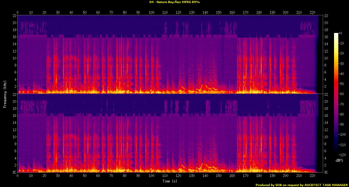 FILE: 12 - Don't Weep for the Indy.flac Size: 20612755 Hash: 71176D0DC04258C3EA7156D558BE40AE Accuracy: -m0 Conclusion: CDDA 100% Signature: 6DF49AD89D2A09A6F7B83ECB0B12992A7A078449 FILE: 11 - He Ain't Heavy, He's My Brother.flac Size: 38128525 Hash: 0089EF6D36BB7DC1186F5B70CBA784D8 Accuracy: -m0 Conclusion: CDDA 100% Signature: 47521C2CD925F50FED2497CEF97C3C369A196E82 FILE: 10 - My One and Only Love.flac Size: 30458548 Hash: 2B5DEB44BD48B0B55842F878C9994442 Accuracy: -m0 Conclusion: CDDA 100% Signature: 5F08E7E33B5B746F926BF532805A19461D8E4478 FILE: 09 - Black Coffee.flac Size: 25829899 Hash: F19B9A0DEEADF8656784FF70C75AC653 Accuracy: -m0 Conclusion: CDDA 100% Signature: 8F768B6DC7769D231F11C73AF851B1B253889B6A FILE: 08 - Before Love Went Out of Style.flac Size: 16456548 Hash: ADCA18C0E291AFA87A68F2CEC5AF6056 Accuracy: -m0 Conclusion: CDDA 99% Signature: D1EB0DD13725AC46C512F34CBD365FE8F1CD9D15 FILE: 07 - The Butterfly.flac Size: 13404068 Hash: EBAB20F6FB2E368457C0350A72B8C00F Accuracy: -m0 Conclusion: CDDA 100% Signature: 7737AE703826A98AD191329FE22B2DBE72A372CF FILE: 06 - Like That.flac Size: 24331223 Hash: 994050750C995907414D1B59C530A860 Accuracy: -m0 Conclusion: CDDA 43% Signature: 2467CE3EF75C918B764DD08E95C96DA97AF8424C FILE: 05 - Sometime Ago.flac Size: 29548227 Hash: 0A9E46F622B448BFDDAD7729E7003AB4 Accuracy: -m0 Conclusion: CDDA 54% Signature: F7368D8F5DA0561C98187B52685B0F35F7632A75 FILE: 04 - Nature Boy.flac Size: 17222297 Hash: ADFFC6C9D73581FAB76E13D6F5947785 Accuracy: -m0 Conclusion: MPEG 89% Signature: 59168B431C8A16B90DA6BB0371BBAE2CF65FCCCB FILE: 03 - Antonio's Song.flac Size: 23655875 Hash: CC43B80CBE02BB24991289463A7F602C Accuracy: -m0 Conclusion: CDDA 43% Signature: 00341FCCD04F8C9224D71F007FED597452FECCCD FILE: 02 - Pre-Dawn Imagination.flac Size: 22419140 Hash: 4AB8A32D05FFD43BFBFD1025F924EA24 Accuracy: -m0 Conclusion: MPEG 90% Signature: 5562CC0D36A0164EC8A2F74B1CAD55AE0707E22A FILE: 01 - It's Been a Long Long Day.flac Size: 23643567 Hash: 577377D1920BD883B89A073C2EDBE1BE Accuracy: -m0 Conclusion: MPEG 80% Signature: E7DB7D40022FC45B3D139D9F97AB62B36AEE3FBC