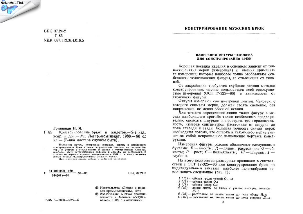 И.Я.Гриншпан | Конструирование брюк и жилетов [1988] [PDF]