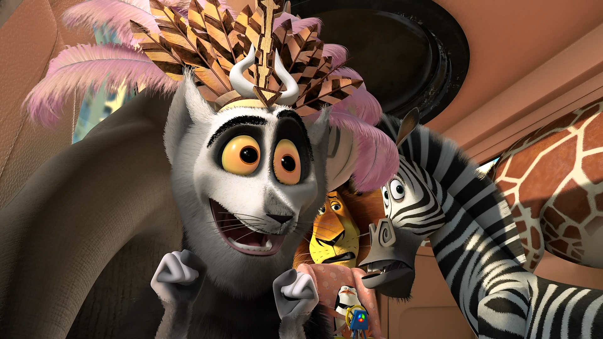 Описание фильма: Лев Алекс, зебра Марти, гиппопотамиха Глория и жираф Мелман, а также король Джулиан, Морис, Морт и Пингвины все еще пытаются вернуться в Нью-Йорк. На этот раз их путь пройдет через Европу, где они откроют свой цирк.