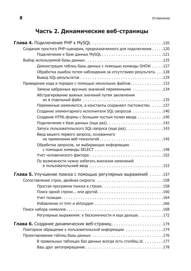 Описание:Если у вас есть опыт разработки сайтов с помощью CSS и JavaScript, то эта книга переведет вас на новый уровень веб-разработки — создание динамических веб-сайтов на основе PHP и MySQL. С помощью практических примеров в книге вы узнаете все возможности серверного программирования. Вы прочитаете, как выстраивать базу данных, управлять контентом и обмениваться информацией с пользователями, применяя запросы и веб-формы.