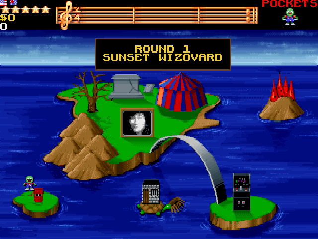 Описание: Вы управляете зелёным большеротым шариком и должны зачищать экраны от врагов – впрочем, довольно оригинальным способом: толкая расположенные вверху экрана блоки так, чтобы они задавили противников. Как только мы всех убили – появляются монетки, которые вскоре исчезнут, так что их надо быстро собрать и отправиться на следующий экран. Монеты пригодятся для покупок кое-каких бонусов, но только самых простых: что-то стоящее приобретается совсем иными путями.