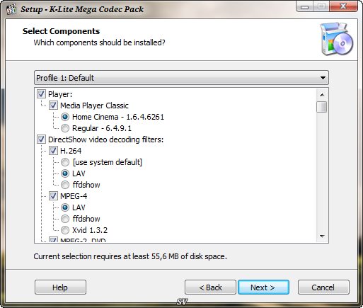 - Последние версии наилучших кодеков.