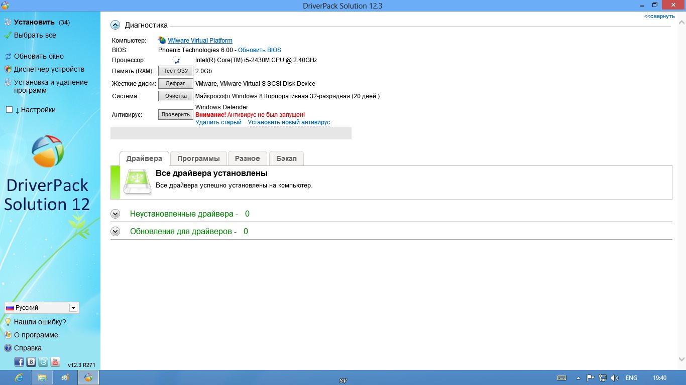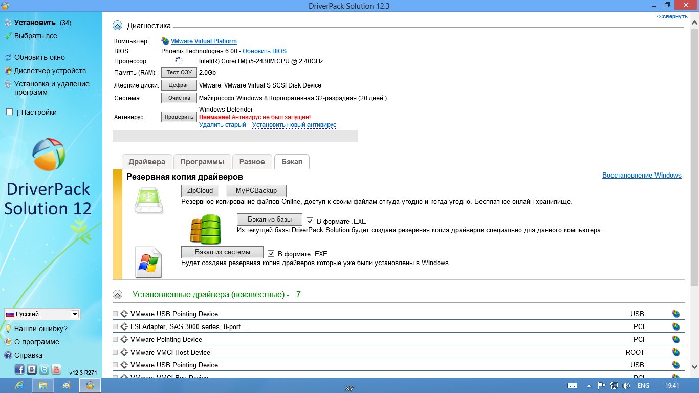 Название программы: DriverPack Solution Версия программы: 12.3 R271 Последняя Версия программы: 12.3 R271 Адрес официального сайта: DriverPack SolutionЯзык интерфейса: MULTi / Русский Лечение: не требуется Системные требования:- ПК (стационарный/ноутбук/нетбук)