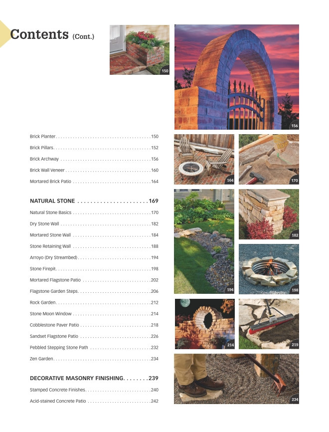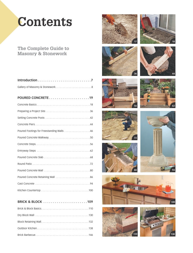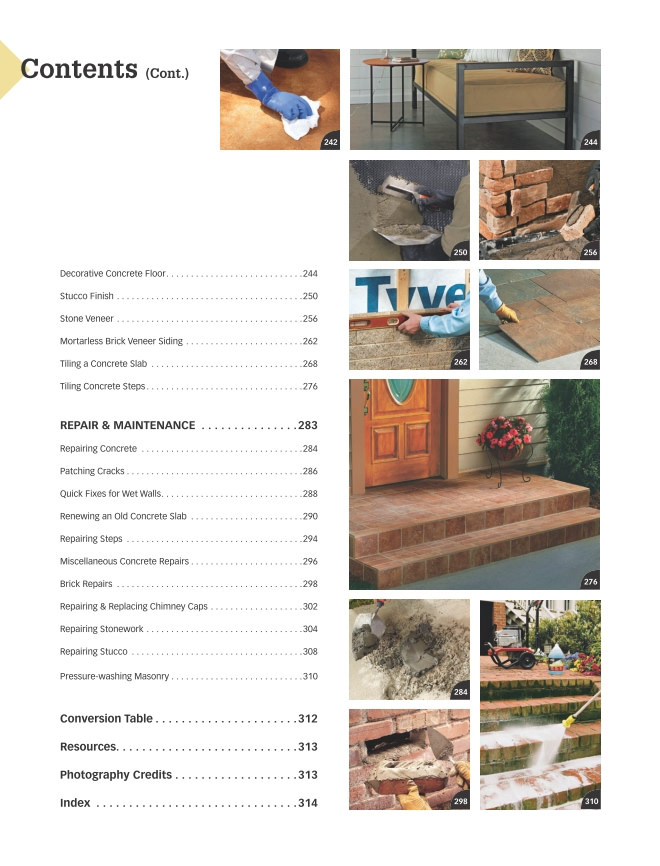 Изготовление бетонных и каменных конструкций для дома (столы) и для небольшого строительства в частном доме. Основные главы: подготовка раствора и создание конструкций для кухни (в доме); колонны, столбы, ворота, летние кухни (кирпичи и блоки); натуральный камень (заборы, ограждения объектов, бетонирование дорожек, декоративные объекты); каминная кладка; ремонт и обслуживание каменных конструкций. Таблица перевода американских единиц измерения в метрическую систему (футы в метры и т.д.)Скриншоты: