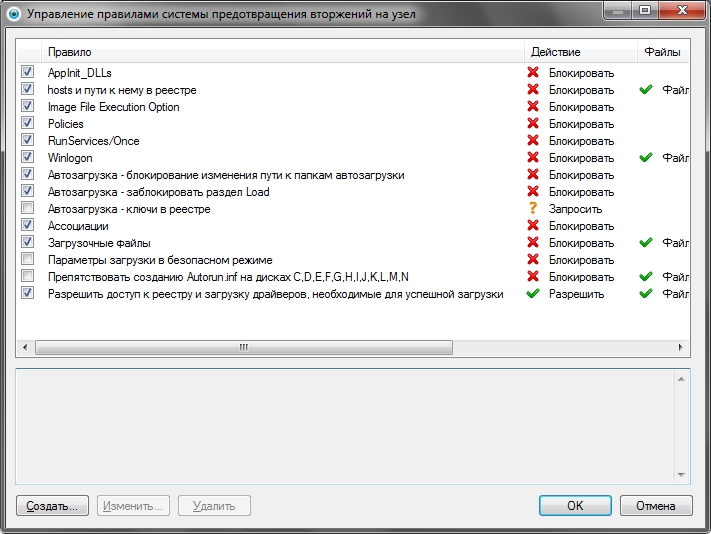 - Настроены правила HIPS (запреты на изменение важных значений реестра и т.п.)