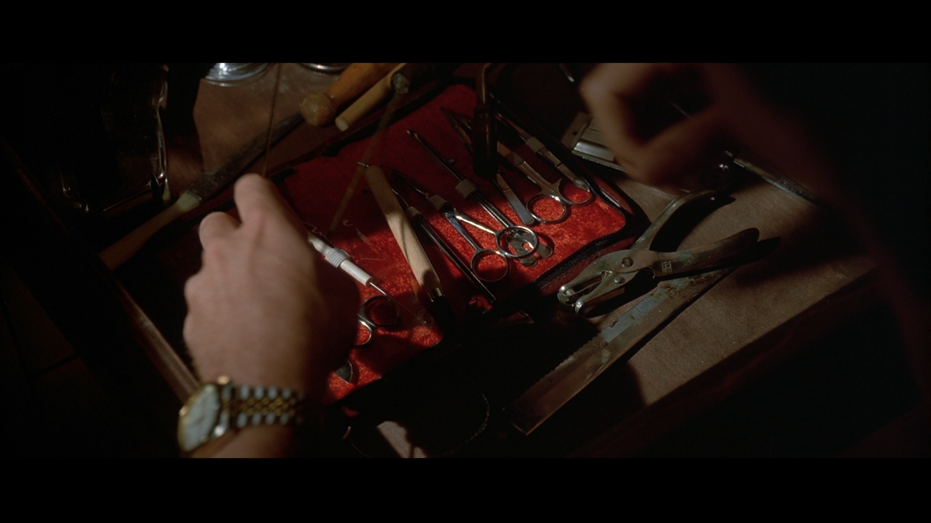 По телевизору Бэйтмана показывают «Техасскую резню бензопилой» (1974) Тоуба Хупера.