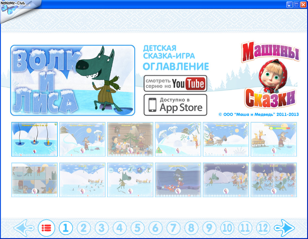 Возрастная категория: 4-10 Дата выхода: 13.12.2013 Тип издания: Лицензия Жанр: Для детей / Обучение Разработчик: «Новый Диск» Язык интерфейса: Русский Язык озвучки: Русский Язык субтитров: Русский Системные требования:Операционная система Microsoft® Windows® XP/Vistа/7 Процессор Pentium® III 750 МГц или аналогичный Athlon® 512 MБ оперативной памяти 500 МБ свободного места на жестком диске 3D-видеоадаптер с памятью 64 MБ, совместимый с DirectX® 9.0c Звуковое устройство, совместимое с DirectX® 9.0с DirectX® 9.0с (есть на диске с игрой)Таблетка: не нужна Описание:Зима уже совсем скоро! Оглянуться не успеешь, как снегу по самые уши нападает… А что зимой самое главное? Конечно, Новый год! Вот и Маша тоже так думает. Она уже и подарок нам всем приготовила: целых три сказки про зиму. Сказки, как водится, у нее не то чтобы очень правильные вышли. Но зато забавные и поучительные! Снегурочка, например, учит с новогодней пиротехникой обращаться, волк и лиса – взаимовыручку проявлять, а Морозко – вежливыми быть и трудолюбивыми. Знай себе смотри да разума набирайся. Новый сборник компьютерных игр по Машиным сказкам – и вовсе сплошной подарок: сразу три игры по сказкам «Снегурочка», «Волк и лиса» и «Морозко»! Веселых заданий там видимо-невидимо: и елку надо нарядить красиво, и в Морозкином домике прибраться, и Снегурочку вылепить, и Бабу-ягу уму-разуму научить. Все игры не простые, а полезные: внимательность, сообразительность и ловкость рук развивают так, что просто диву даешься. И на зимние каникулы – самое лучшее занятие! Играйте, а Маша пока новые сказки вспомнит, еще веселее прежних! Скриншоты: