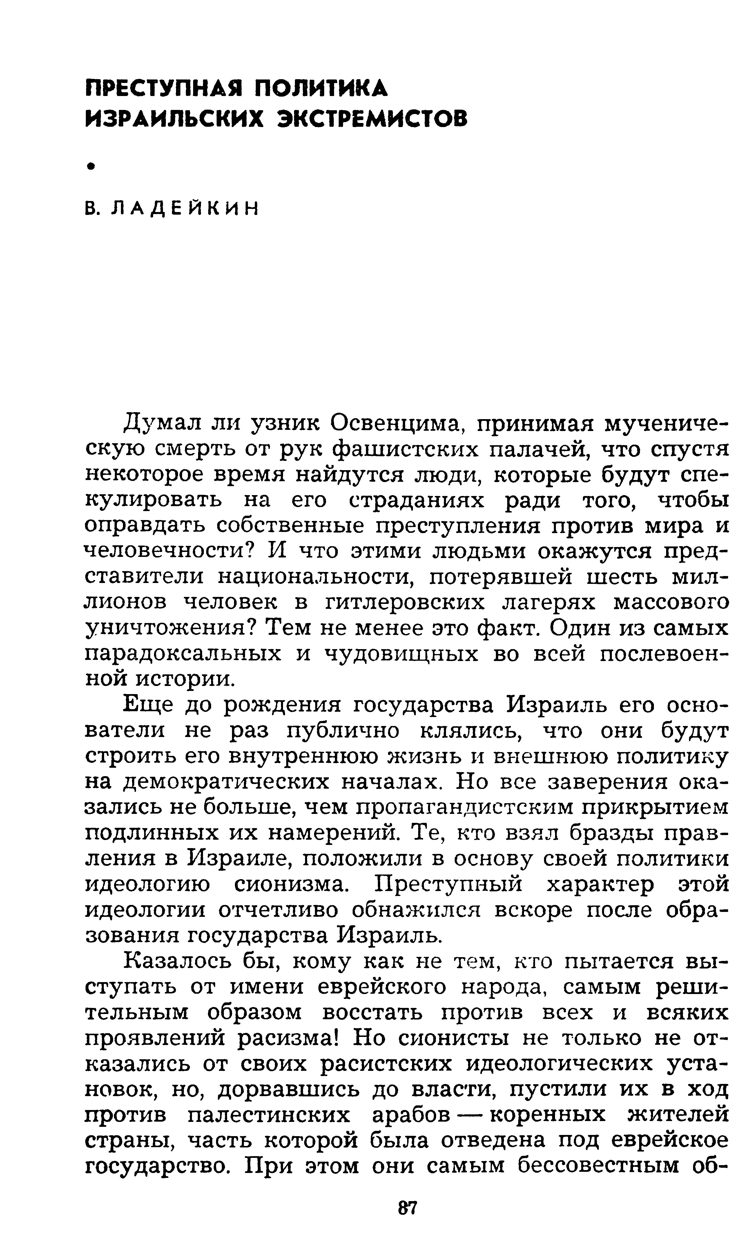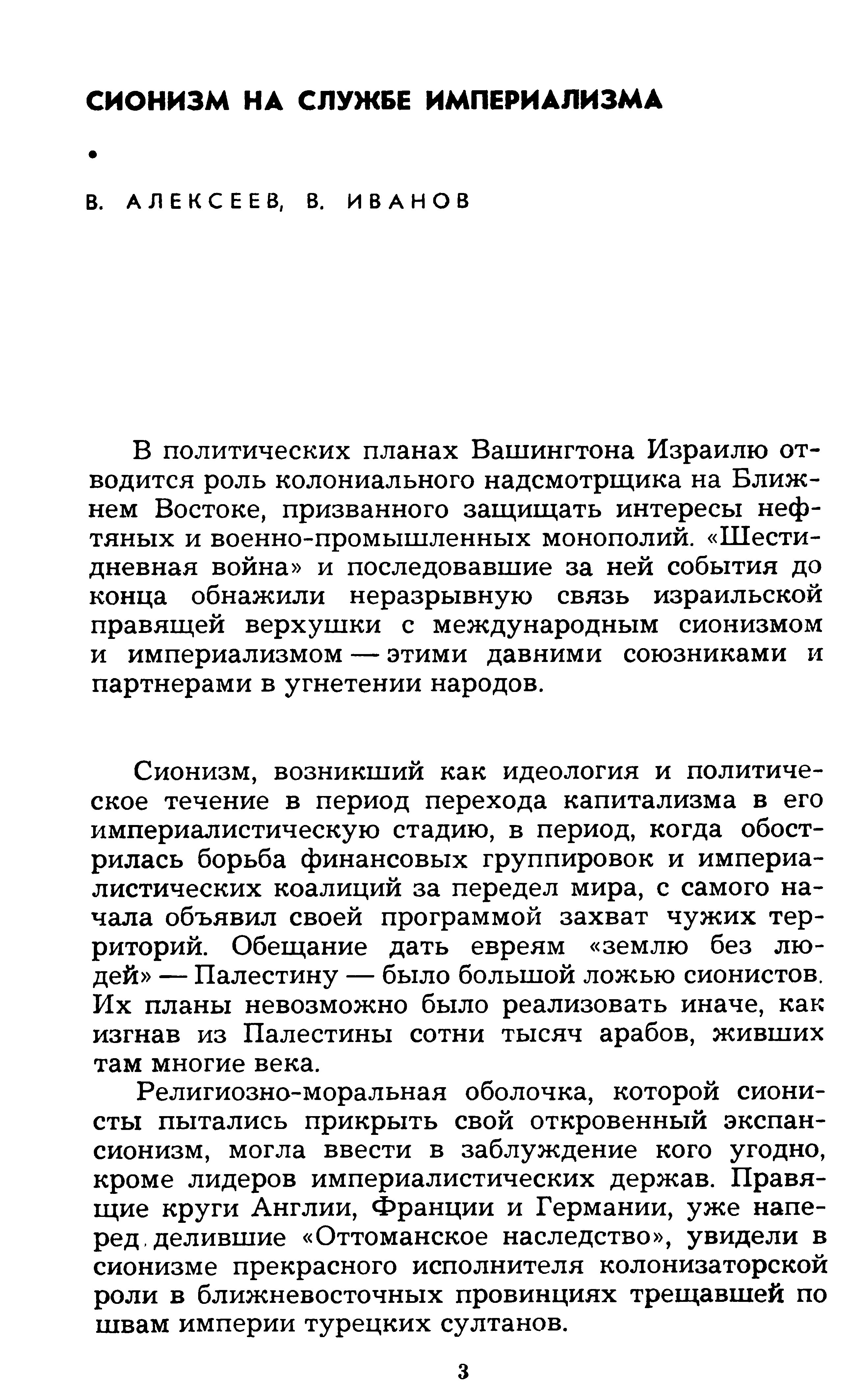 Сионизм выполняет роль штурмового отряда империалистической реакции, зачинщика антисоветских провокаций, факельщика новых военных конфликтов.
