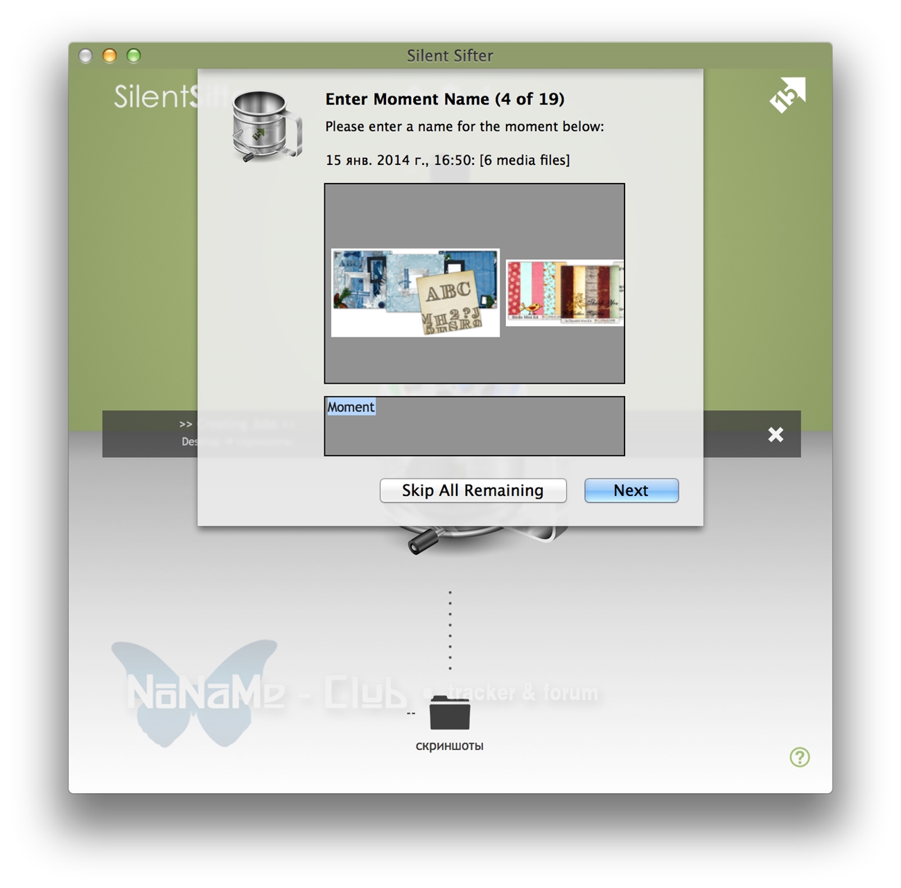 Системные требования:OS X 10.8 или более поздняя версия, 64-разрядный процессорОписание:У вас много цифровой фотографии и вы не знаете как разобраться? Наведите порядок и поддерживайте порядок с Silent Sifter. Silent Sifter будет удалять дубликаты, централизовать и организовывать все ваши существующие фото и видео, как вы хотите. После того, как вы определили места сохранения, вы можете импортировать новые файлы от камеры, смартфона, планшетного ПК, SD Card или папок той же структуры в один щелчок мыши. Silent Sifter помешает созданию дубликатов фотографий или видео.
