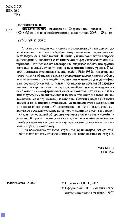 В.П. Полтавский | Интраканальная медикация: cовременные методы (2007) [DJVU]