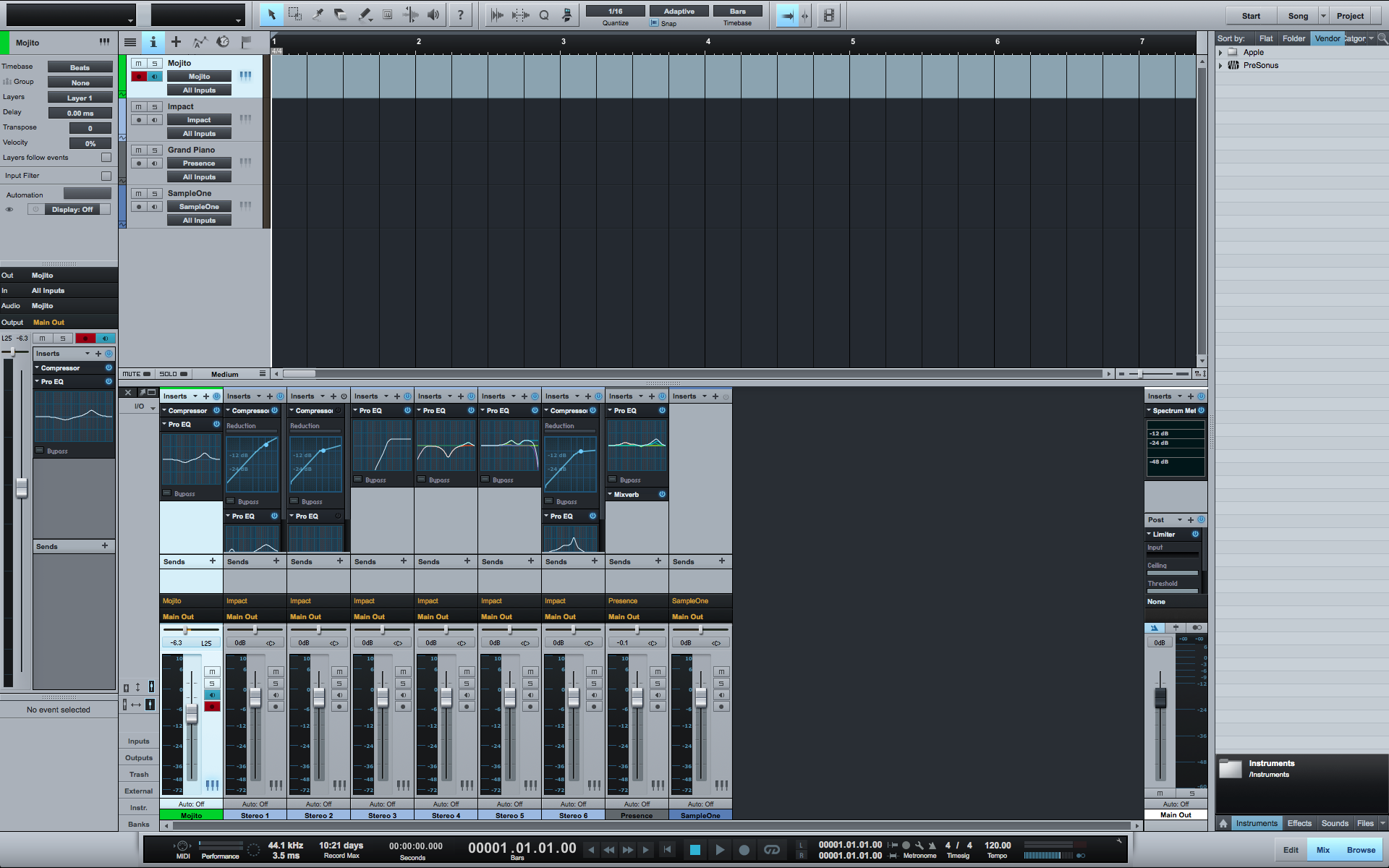 Описание:Studio One Pro - мощный, профессиональный аудио/MIDI-секвенсор, снабжен не только всеми профессиональными функциями, необходимыми музыканту и аранжировщику в процессе производства музыки, но и некоторыми новыми разработками, выделяющими эту программу из ряда традиционных аудио-приложений. В основе работы Studio One Pro лежит механизм автоматического переключения между 32 и 64 битной разрядностью вычислений с плавающей запятой.
