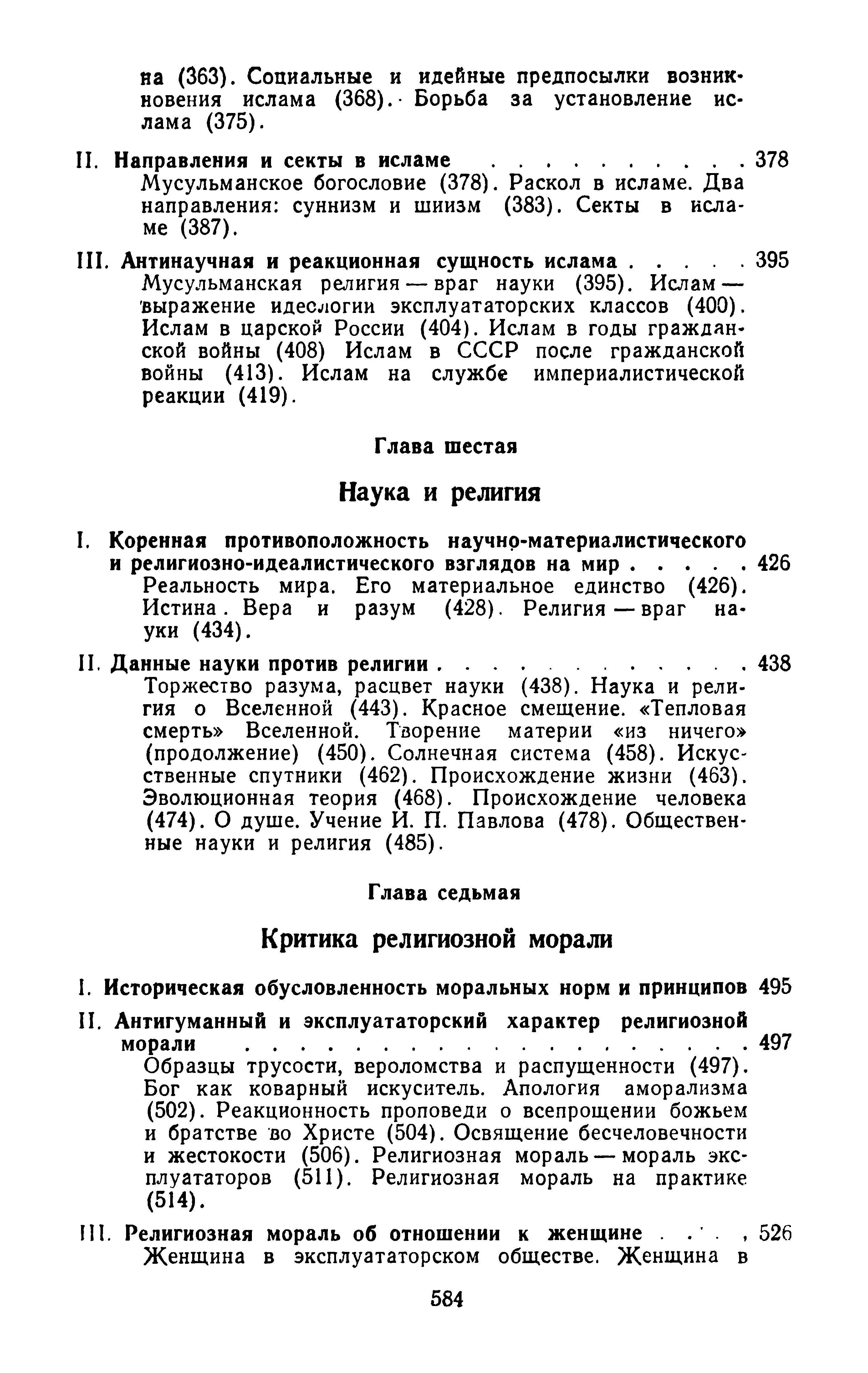 Описание:В книге рассматривается марксистско-ленинское понимание сущности религии, освещается отношение Коммунистической партии и Советского государства к религии и церкви. Значительное место в ней уделено вопросу происхождения религиозных верований, приведен справочно-исторический материал по иудаизму, христианству и исламу, показывается коренная противоположность науки и религии, подвергается критике религиозная мораль.