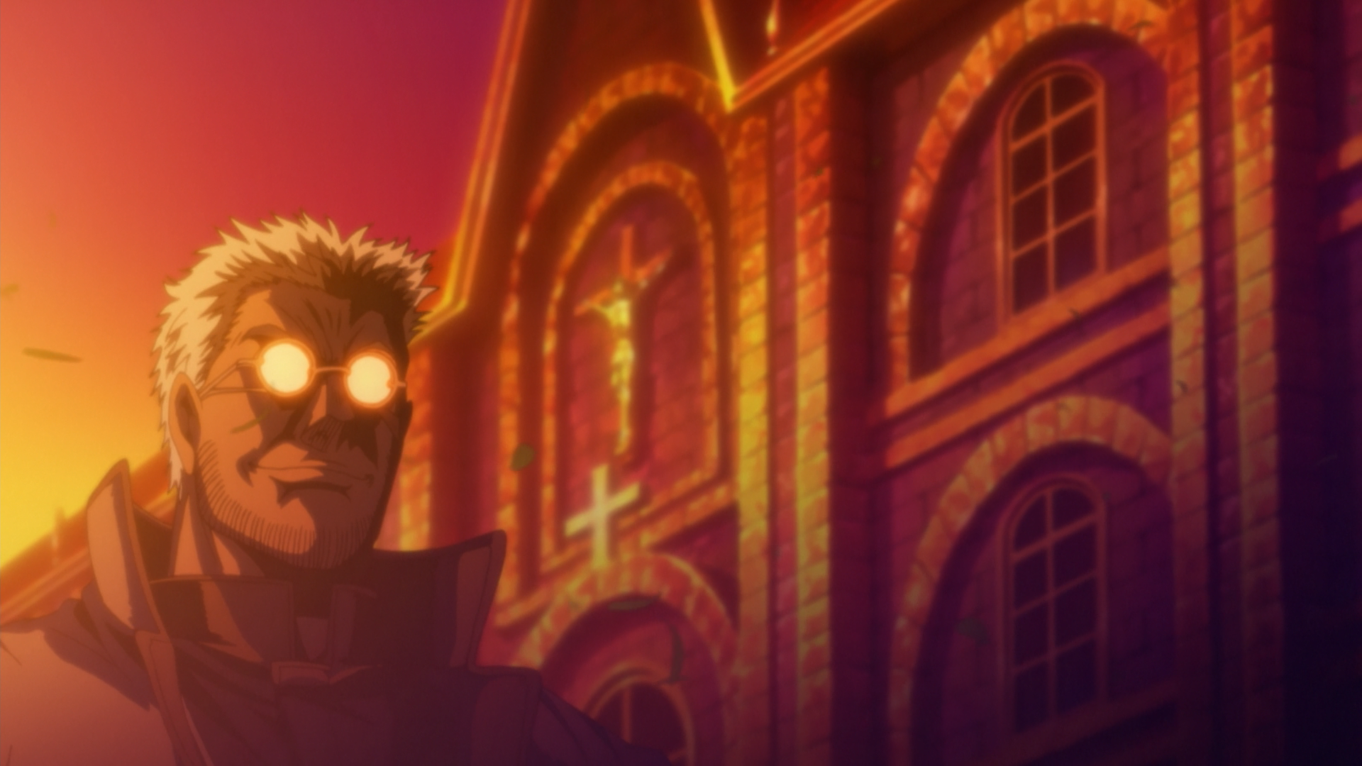 Первую часть можно считать вводной, пересказывать её сюжет – не спойлерство, а скорее занудное повторение пройденного: вот Интегра с Уолтером, вот непобедимый вампир смотрит на луну, а потом спасает полицейскую Викторию Серас, которая неожиданно для себя меняет место службы, рацион и остальные привычки, потом появляется отец Александр, как воплощение знакомого зла, злом неизвестным оказывается некто с недоброй усмешкой, впрочем, не сильно выделяющийся на фоне повсеместной зубастости.