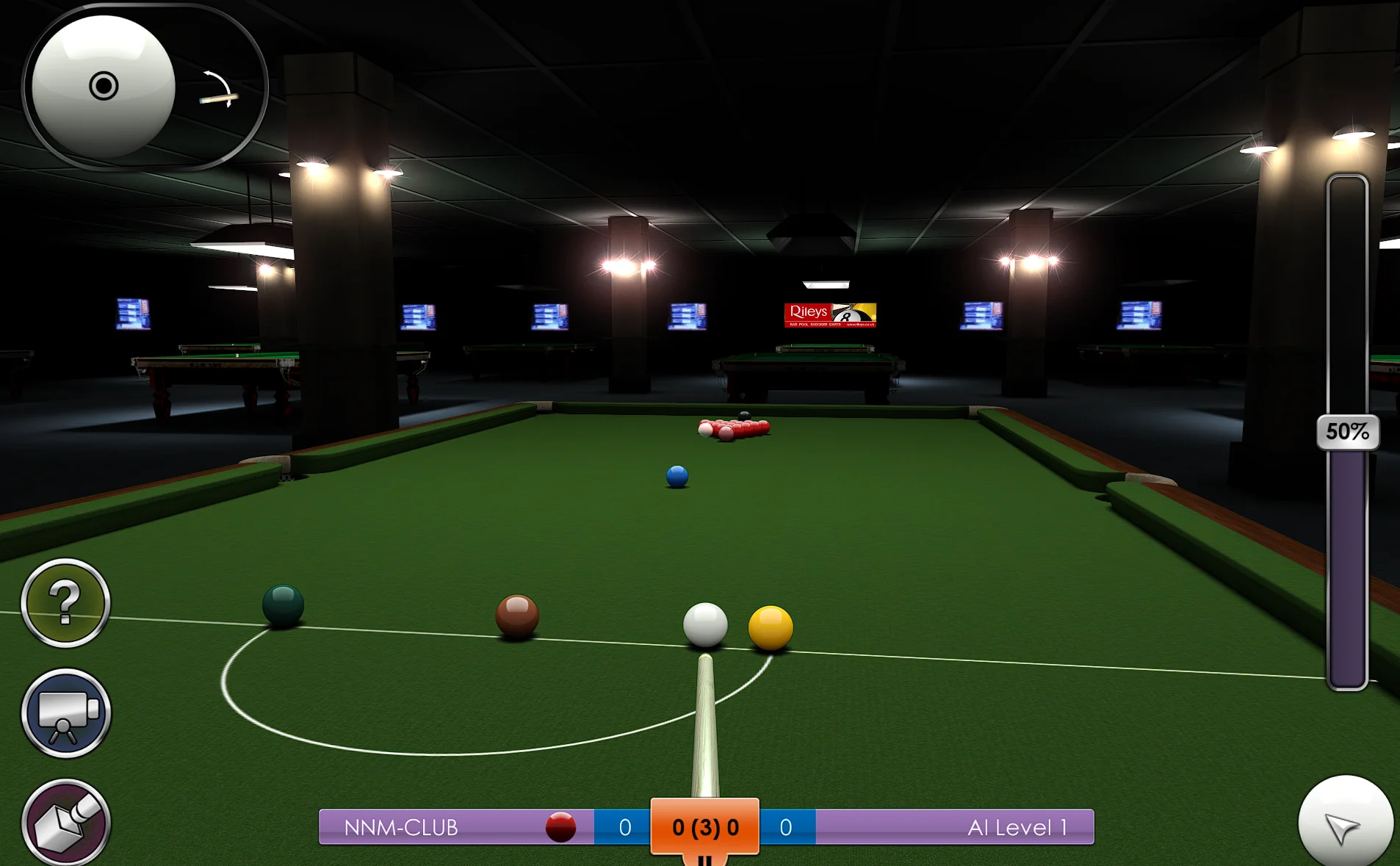 - Включает в себя три режима: UK 8-Ball, США 8-Ball и США 9-Ball;