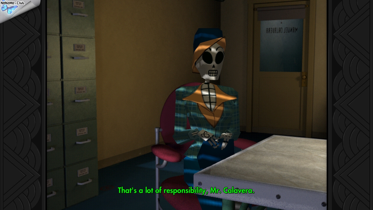 - Для ностальгирующих поклонников, которые заново прошли игру аккурат позавчера, есть дополнительный стимул пройти ее еще раз. Если включить режим комментариев разработчиков, в определенных местах вы сможете без отрыва прослушать рассказы Шафера и команды (в основном все-таки Шафера) о том или ином решении — вплоть до того, как Тим доволен узором ковра в забегаловке Селсо Флореса. Разработчики охотно делятся историями: как создавались отдельные сцены, откуда у пауков крылья, а у сотрудников Департамента Смерти — нью-йоркский акцент; чем вдохновлен дизайн определенных мест и стиль эпизодов, как придумывались некоторые шутки. Словом, интересной информации масса, и подана она в настолько непринужденной обстановке, что кажется, будто разработчики расселись вокруг и персонально для вас вещают о последних днях золотого века квестов.