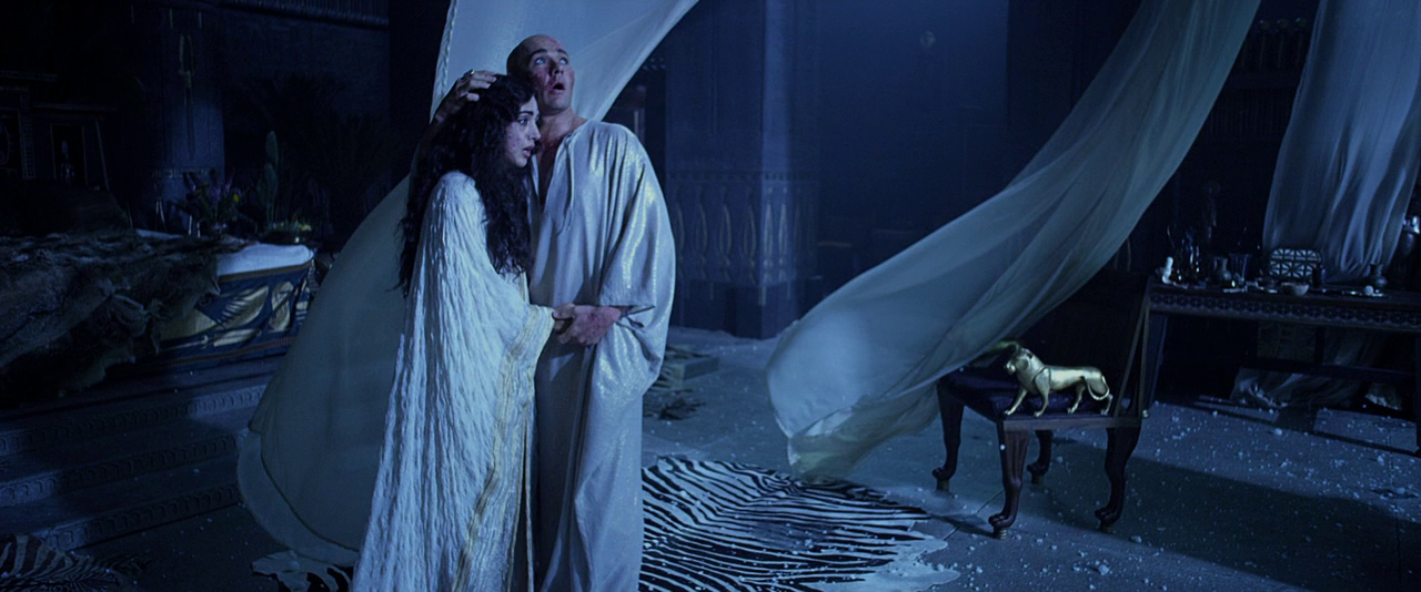 • Моисей по колено заходит в море, чтобы достать со дна свой меч, и соответственно его одежда намокает. Когда он выходит, с одежды еще стекает вода, через одну смену кадров Моисей снова стоит полностью сухой.